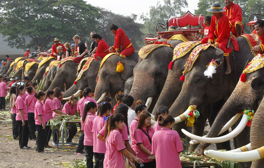 • Elephant parades and ceremonies: In Ayutthaya, Surin, and other provinces with strong elephant traditions, decorated elephants (often painted with traditional patterns) participate in parades, blessing ceremonies, and cultural shows.